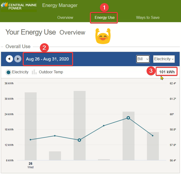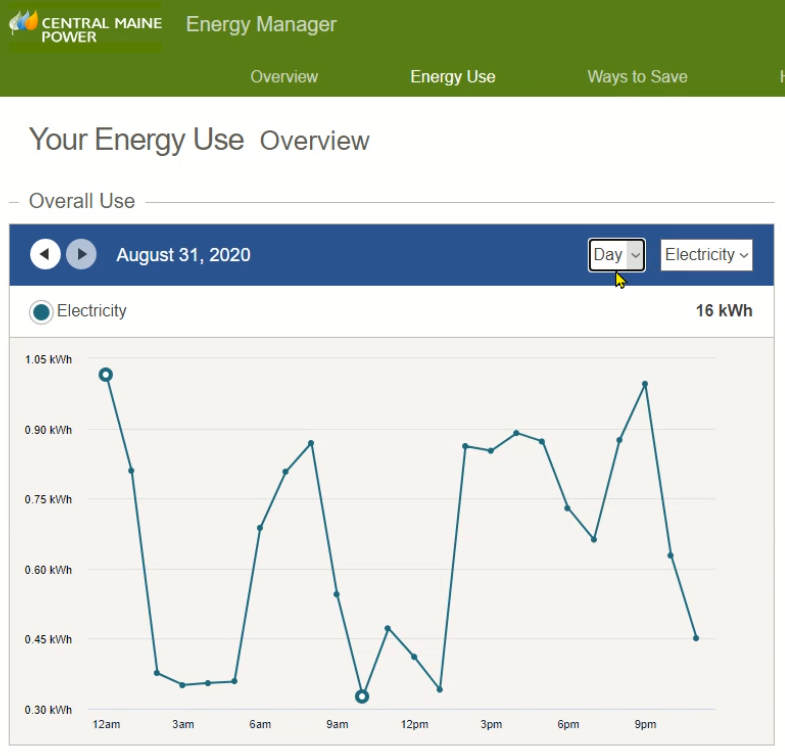- This screen snippet is from the CMP Energy Manager Energy Use screen. When first entering this screen, the graph shows the Overall use for the YEAR.